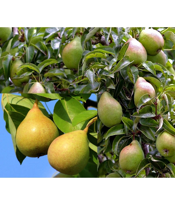 Pflanzen Sie doch gleich zweit beliebte Birnensorten in Ihren Garten. Auch wenn Sie nicht genug Platz haben, um zwei Bäume zu pflanzen, können Sie jetzt trotzdem zwei Sorten im Garten haben, die sich sogar gegenseitig befruchten können. Birnen sind eigentlich selbststerile Pflanzen, doch durch das Zusammenfügen der beiden Sorten auf einem Baum, ist keine zweite Pflanze nötig. ‚Conference‘ als eine anspruchslose Herbstbirne überzeugt durch mittelgroße, gelb-grüne Früchte mit einem langen Hals und sehr saftigem, lachsfarbenem Fruchtfleisch. Die Birnen der ‚Williams Christ‘ sind glockenförmig, goldgelb und groß. Die gelbweißen Früchte sind zart schmelzend und saftig, sie verfügen über einen süßen Geschmack mit einem kräftigen, intensiven Aroma. Die Erntezeit der Sorten liegt zwischen September und Oktober. Die Birnen eignen sich für den Frischverzehr, aber auch zum Verarbeiten. ‚Williams Christ‘ ist eine sehr bekannte Sorte zum Schnaps brennen. ‚Conference‘ eignet sich zum Verarbeiten, zum Beispiel als Kuchenbelag. Mit diesen beiden Sorten haben Sie die perfekte Kombination aus leckeren Birnen.