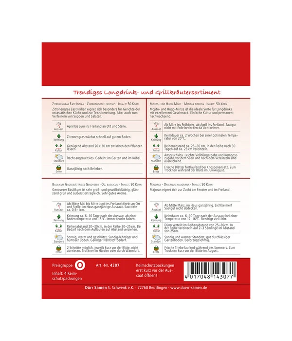 Dürr Samen Longdrink- Und Grillkräutersortiment