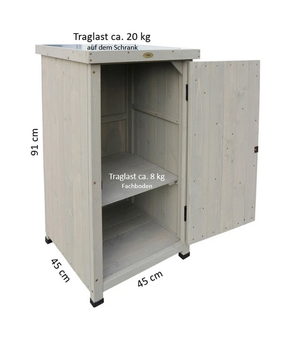 Sie mögen es gern aufgeräumt in Ihrem Garten? Mit dem Gartenschrank von Habau wird es gleich noch ordentlicher in Ihrem Außenbereich! Auch auf dem Balkon ist der Schrank ein hilfreicher Begleiter, um beispielsweise Blumentöpfe, Kerzen, Pflanzwerkzeuge oder Dünger unterzubringen. Um die Gartenpolster trocken und sauber zu halten, können Sie diese ebenfalls darin verstauen. Den zusätzlichen Stauraum werden Sie schnell nicht mehr missen wollen und sich über die griffbereiten Utensilien in Ihrem Schrank freuen. Hinzu kommt das hübsche Design der Aufbewahrungsmöglichkeit, das mit schönen Details überzeugt.