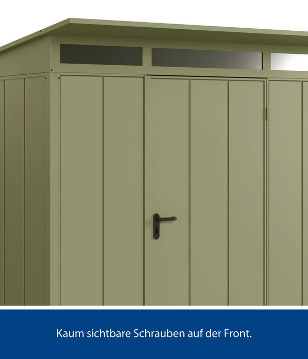 Aufbau und Montage des Gerätehauses von Hörmann sind super einfach, sodass Sie schnell in den Genuss der zahlreichen Vorteile Ihres neuen Stauraums kommen. Dazu gehört unter anderem der praktische Lichtausschnitt, welcher im Innenraum für Helligkeit sorgt, sodass Sie auch bei schlechten Lichtverhältnissen alles schnell finden. Ordern Sie den passenden Boden gleich mit, um das Gerätehaus zu schützen und zu stabilisieren. Mit dem Hörmann Berry-Gerätehaus Modern-P Typ 2 haben Sie in Zukunft einen zuverlässigen Platz für all Ihre Gartengeräte. Bestellen Sie jetzt!