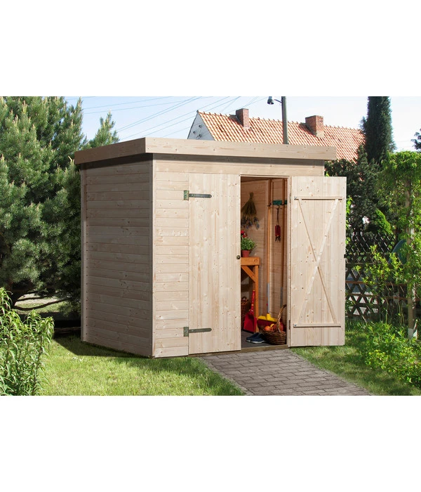 Das Gartenhaus besteht aus robustem und widerstandsfähigem Holz. Auch bei Wind und Wetter sind Ihre Habseligkeiten, dank des hochwertigen Massivholzdachs, sicher. Durch seinen minimalistischen und modernen Stil passt es perfekt auf jedes Grundstück und fügt sich hervorragend in Ihren Garten ein. Mit dem passenden Massivholzboden, der sich ganz unkompliziert gleich mit dem Gartenhaus 344 von Weka gemeinsam bestellen lässt, bietet das Haus den idealen Untergrund zur sicheren Lagerung und Aufbewahrung auch über den Winter. Zögern Sie nicht und bestellen Sie das parktische Gartenhaus jetzt gleich hier online!