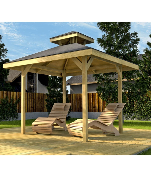Geben Sie Ihrem Garten einen neuen, vielseitigen Mittelpunkt. Die Weka Gartenoase 651 Gr. 1 ist mit ihrem beeindruckenden Zeltdach und der natürlichen Holzoptik nicht nur ein optisches Highlight. Auch ihre vielen verschiedenen Verwendungsmöglichkeiten werden Sie beeindrucken. Alleine nutzen Sie den freistehenden Pavillon etwa, um inmitten des Grüns und der blühenden Pracht Ihres Gartens nach einem arbeitsreichen Tag die Seele baumeln zu lassen. Entspannen Sie bei einem guten Buch oder einem Glas Wein, während Sie den Blick über Ihr eigenes kleines Reich schweifen lassen.