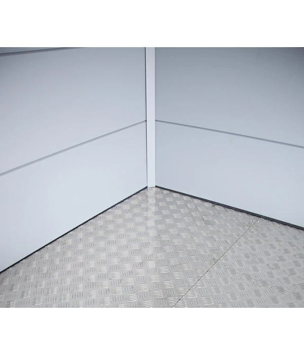 Mit diesem Riffelboden aus Aluminium schaffen Sie eine besondere Wertigkeit für Ihr Wolff Finnhaus Metall-Gerätehaus Eleganto 2724. Die geriffelte Struktur des Bodenbelags garantiert Ihnen einen sicheren Stand im Gartenhaus, sodass Sie auch mit nassen Schuhen nicht ausrutschen. Der unkompliziert zu verlegende Boden wird auf einer Stahlträgerkonstruktion angebracht und ist schwer belastbar. Zudem stellt Wolff Finnhaus eine Garantie von ganzen 20 Jahren für diesen Artikel aus. Zögern Sie daher nicht lange und werten Sie Ihre Gerätehaus Eleganto 2724 funktionell wie optisch auf!