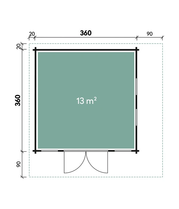 13 m², 77 mm Wandbohlen, Pultdach, Isolierglas